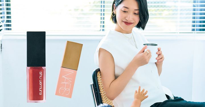 「基本的には週2回、イレギュラーで娘が発熱した日なども在宅で勤務。出社の日は終日ファンデーションをしっかり塗っているので、在宅時は肌を休めるのがマイルール。その代わりチークとリップはしっかりとオンして、ちゃんとメイクしている感を出すようにしています」