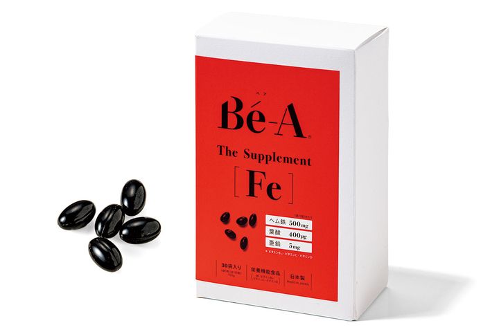 吸収のよいヘム鉄に亜鉛、葉酸、ビタミン3種を豊富に配合。着色料・香料・甘味料・保存料フリー。ベアザ・サプリメント Fe30 袋/30日分¥4,750(Bé-A)