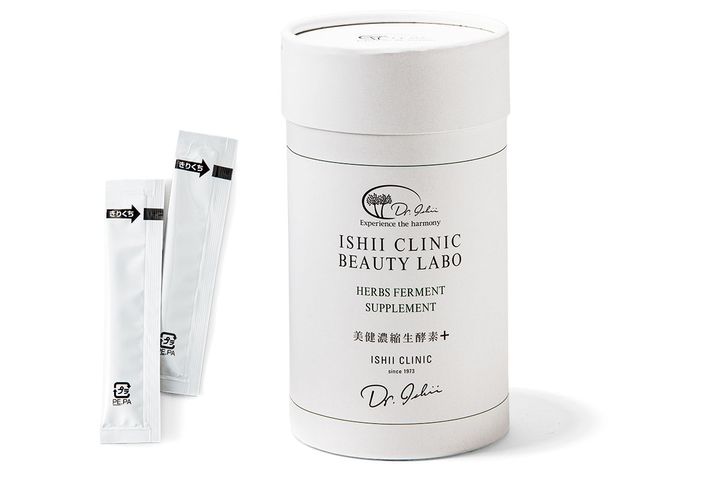 成分は日本古来の生命力溢れる80種以上の野草・野菜・果物・海草類。イシイクリニックビューティーラボ美健濃縮生酵素プラス5g×30包¥9,180(石井クリニック美容研究所)
