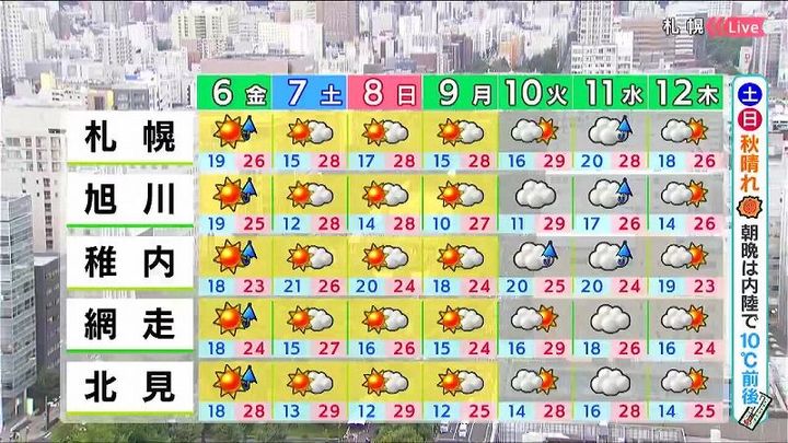 3. 6日から「さっぽろオータムフェスト」!カラッと晴れて、お出かけ日和 北海道の週間天気予報