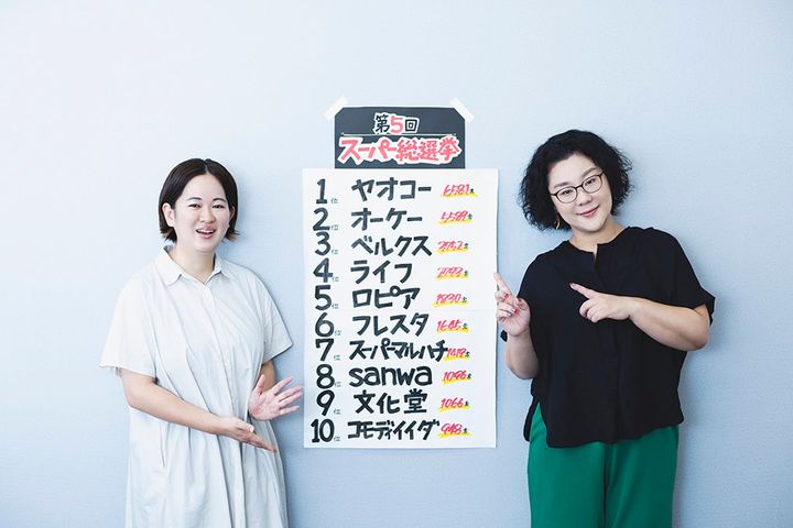 ―盛り上がりましたね~。リスナーの方も、すごく発表を楽しみにしているのが伝わりました。「トイレまでラジオを持っていきます」という方がいたり……最後の発表は、なんだかよくわからないけど、胸が熱くなりました。投票数が増えたことで、だいぶ順位が変動した印象です。前回までは首都圏のスーパーが中心でしたが、今回は広島、岡山、山口で展開する「フレスタ」、神戸・大阪の「スーパーマルハチ」がトップ10入りしました。