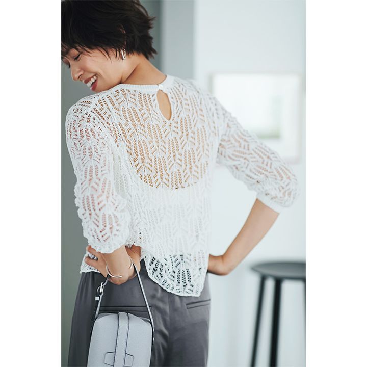 インナーで遊べる透けニットは このくらい大胆な柄で攻めたい