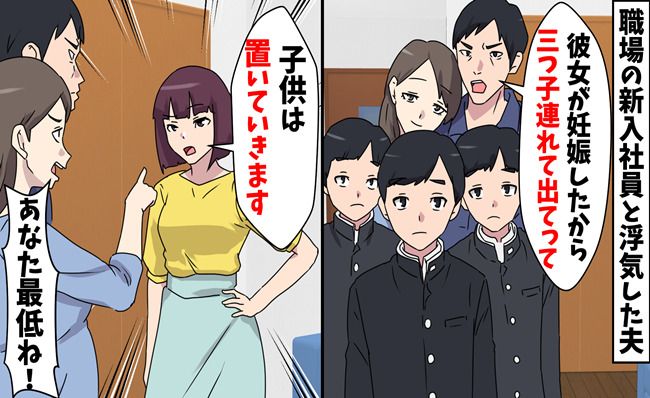「彼女が妊娠したから、三つ子連れて出てって。お前とは離婚な」と。