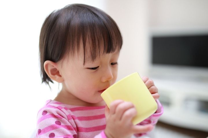 厚生労働省の発達確認では、1歳6か月検診の確認事項として「自分でコップを持ち水が飲めること」とあります。飲み物を「ごっくん」できるようになったら、そろそろ練習を始める時期だと考えてくださいね。