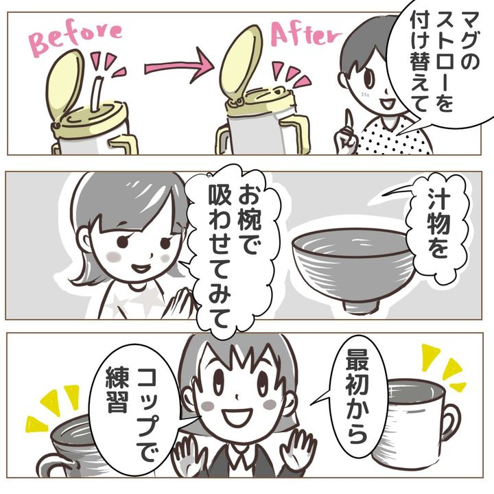 私はマグのストローから、飲み口だけを変えてコップ口にしましたよ qa.mamari.jp