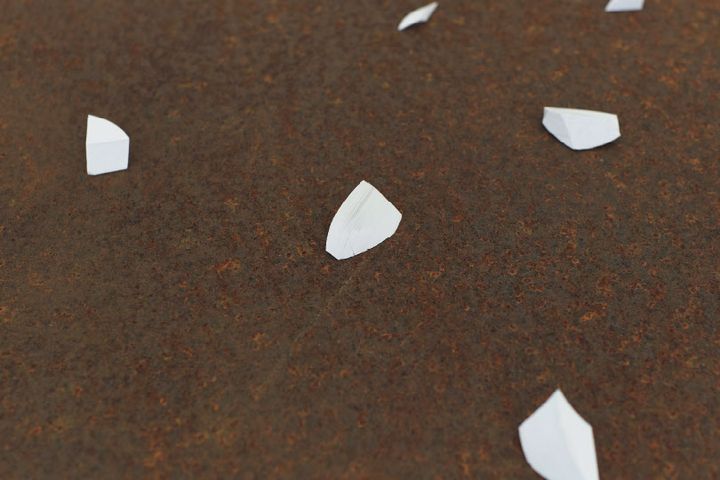 石を練り込んだ紙で石のようなものを作った彫刻作品。「作られたものに宿る“そのひと性”を感じて救われた。人と会えない時期にこれを見た体験は、僕の宝物です」と石津。《cut down / fragments》2021年 ©Nerhol Courtesy of Yutaka Kikutake Gallery