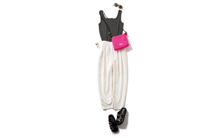 お腹周りがゆったりとしたタックパンツ。残業の日にも。¥39,600(ソブ/フィルム)