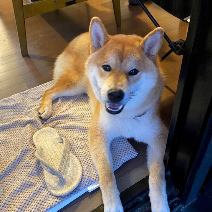 千葉県鴨川市生まれ、都内在住のオスの柴犬。ソラ父さん、ベニ母さん、アキ、チャチャ丸、マメ、ルルの兄弟姉妹の末っ子。奥目の二重でちょっと困ったような表情と、俊敏な動きが特徴で、近所のおまわりさんや見知らぬ通行人にも愛想を振りまくハッピーな性格。現在「スワレ」「マテ」を鋭意習得中。