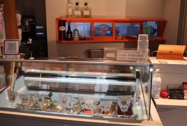 ケースには色とりどりのジェラートが並んでいますが、 原材料はフードロス削減のために、規格外の野菜や果物を使用されています。 味は変わらないのに、傷や形が悪く出荷できない野菜や果物が 形を変えてとびきり美味しいジェラートになって提供されています♪