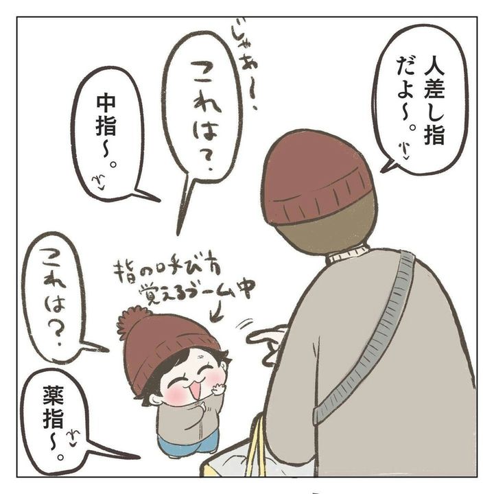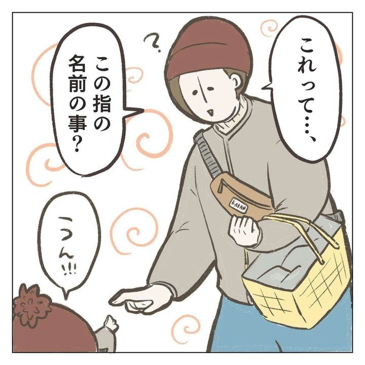 ジェーコ(@Jeeeeeeeeko)さんの息子のなーさんは、物の名前を覚えるブームが到来中。スーパーのレジ待ち中にも、指の名前を覚えたがるなーさんですが、ママのカバンを「カバンだよ」と教えると「そうじゃないでしょ」といいます。その心は?思いもよらぬ3歳児の記憶力にほっこりする漫画をごらんください。