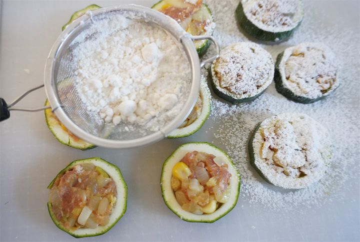 3. ズッキーニにカレー味のお肉をのせて「ピカタ」にしてみた!”塩麴パウダー”を加えて旨味オバケ~【農家直伝】
