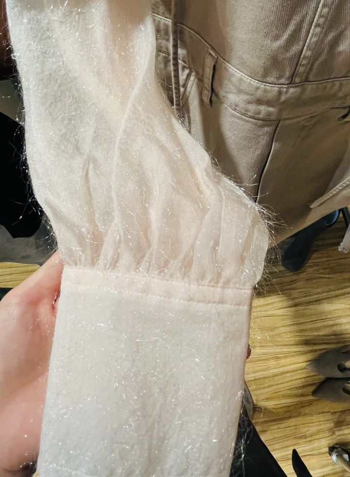 4.レイヤーでオシャレの幅が広がる「ラメのオーガンジートップス」