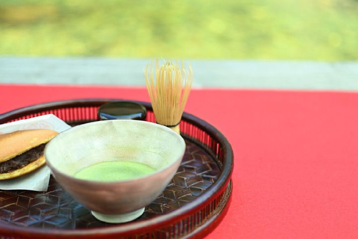 ホテル『界 長門』では、深川萩のお茶碗で「あけぼのカフェ」のどらやきとともに野点を体験できる茶箱セットを用意。
