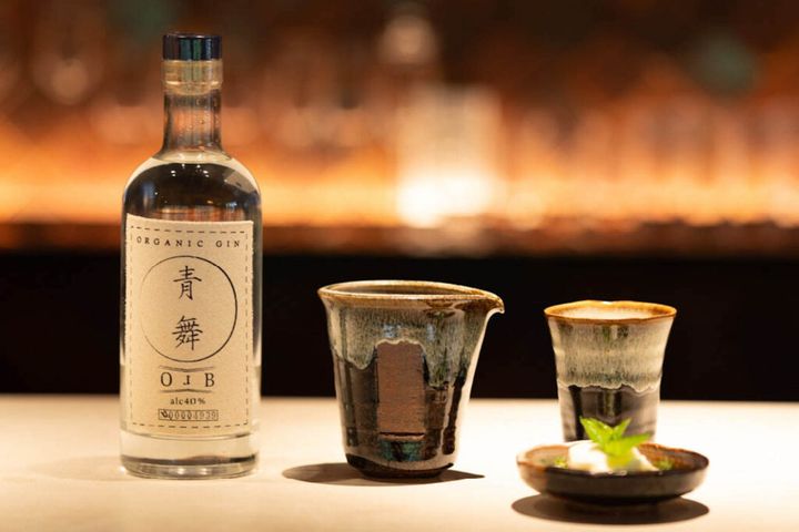 『THE BAR NAGATO』では、長門市初のクラフトジン「青舞(オーブ)」を使った限定ドリンクを、13代田原陶兵衛が手がけるうつわで楽しめる。