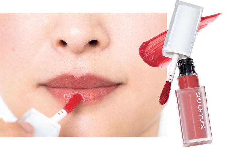 グロスは中央の広い部分に塗って上下をなじませる。中央だけにほんのりツヤをのせつつ、縦ジワを解消してハリを出す効果あり。