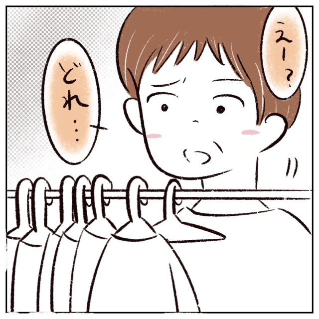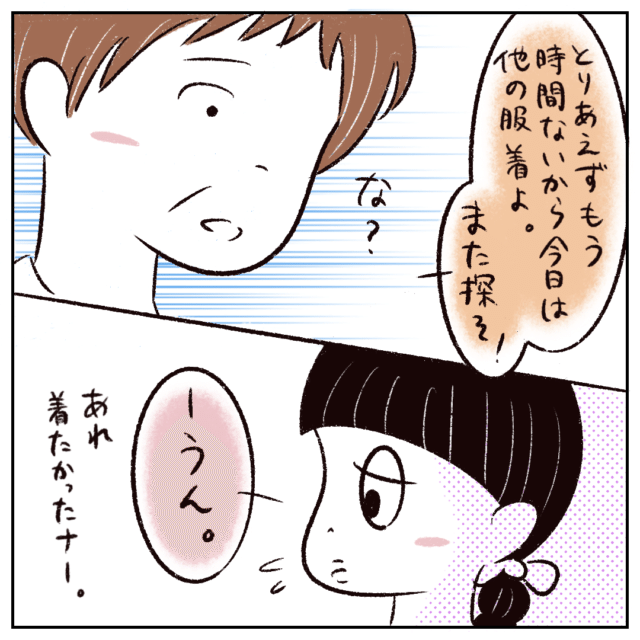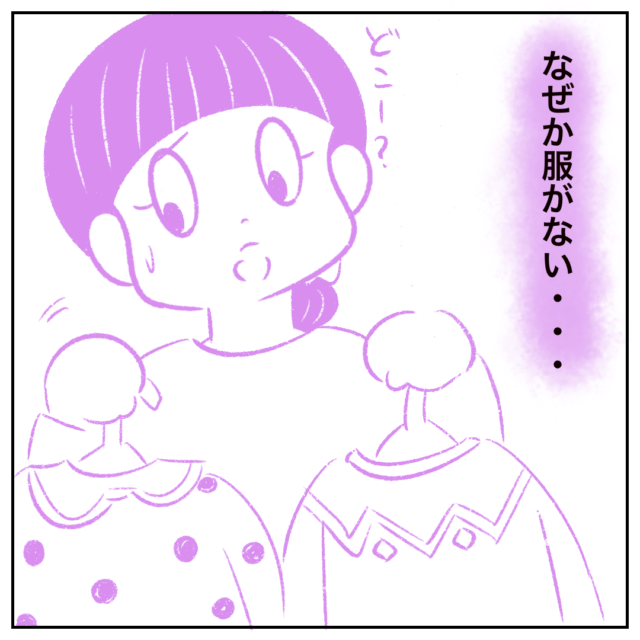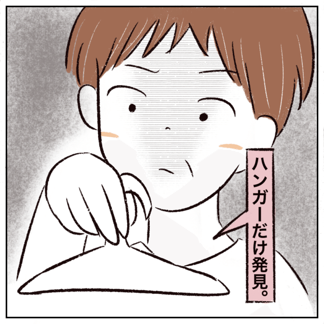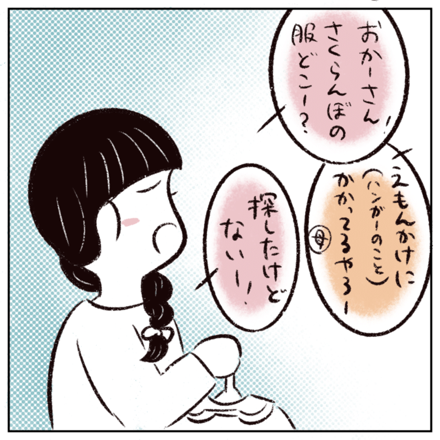 お母さんに聞いてみると「えもんかけ(ハンガー)にかかってるやろー」と言われますが、探してもやはり見つかりません。