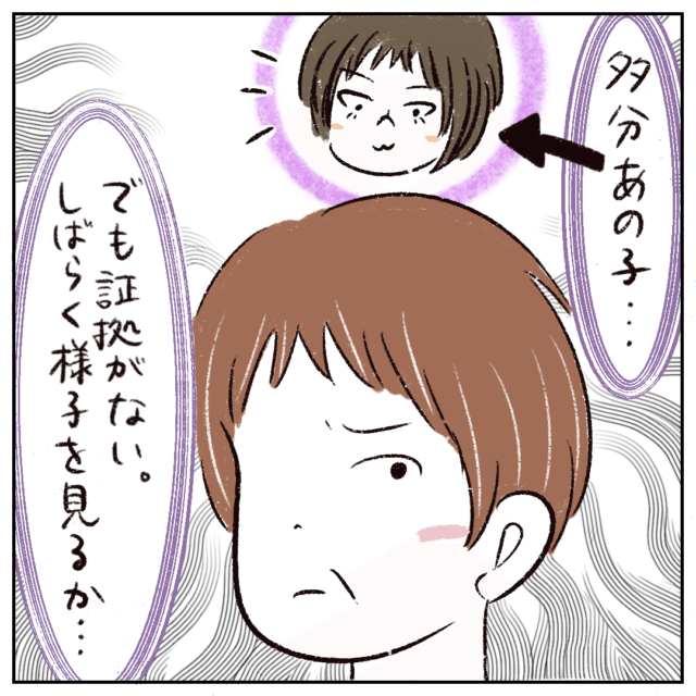 がっかりしながら別の服に着替えるまるさんを見ながら、お母さんの頭には「たぶんあの子・・・」とさなかちゃんの顔が浮かんでいました。そして、「でも証拠がない。しばらく様子を見るか・・・」と考えていました。