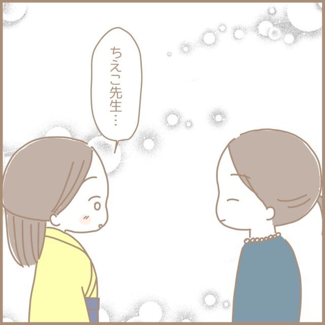ちえこ先生、まるちゃんさんのことをちゃんと認めてくれていたのですね!いつも素っ気ない態度だったちえこ先生ですが、本当は明るい先生だったのですね。