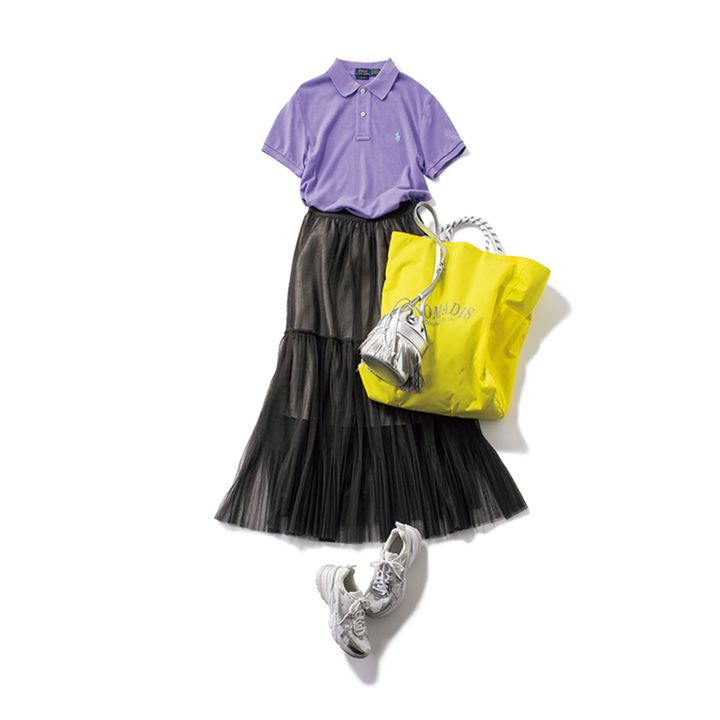 裾が透けたスカートで、人とかぶらない大人の華やぎが。¥10,780(リリアン カラット)