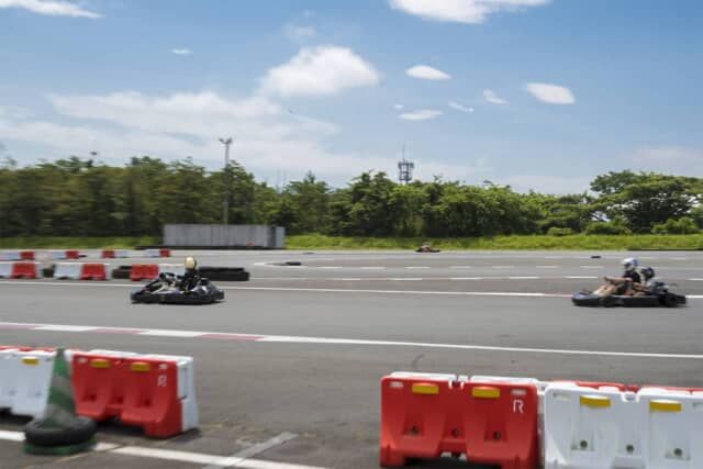 最終コーナーを立ち上がって、ストレートではアクセルをベタ踏み。スピードがグングン上がります。2人乗りもあるので、子供を同乗させて楽しむ人もいました。