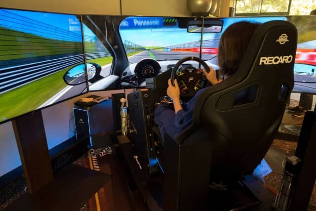 富士スピードウェイのサーキットコースを時速250kmで駆け抜けることもできちゃいます。この後レーシングカーも試したのですが、真っすぐ走らせるのが至難のわざで、スピンの連続。レーサーの凄さまで実感しました!