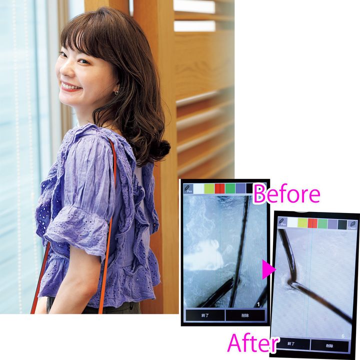 「根元から立ち上がるような髪のボリューム感に感動。顔がすっきりと小さくなった体感があり、肌もツヤツヤになって驚き」