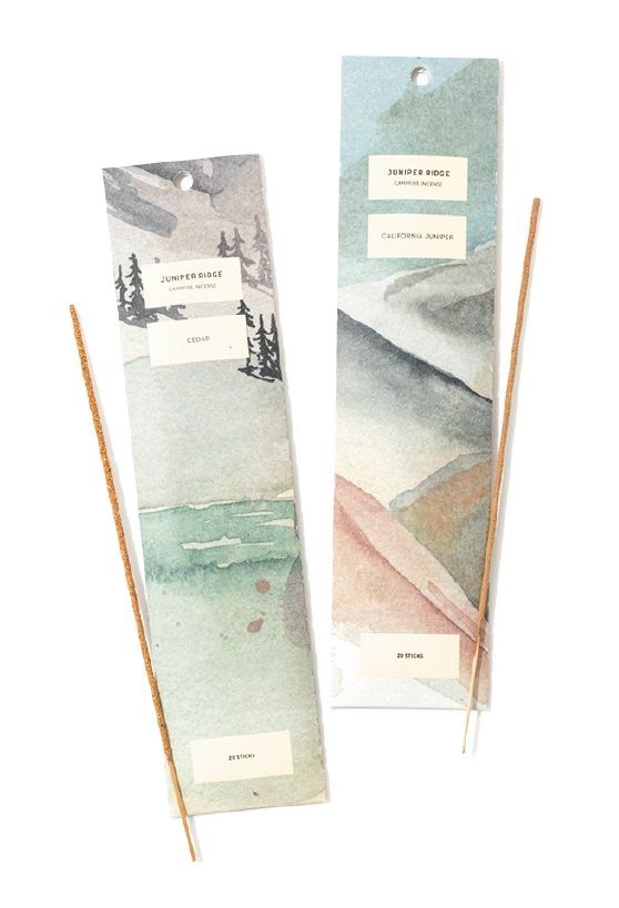 アメリカ西海岸各地の山や森、砂漠で採集した植物の香りをそのまま閉じ込めたお香「キャンプファイヤーインセンス」。全5種類。左から、シーダー、カリフォルニアジュニパー 20本入り各¥2,400(JUNIPER RIDGE/This___ TEL:03・6379・4620)