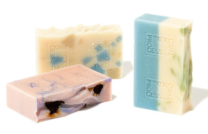 熱を加えずに30日以上じっくり熟成させるコールドプレス製法を採用。香りはもちろん、洗いあがりの潤い感もグッド。左から、ハーブ&アルガン¥4,500 クレイ&アーモンド、ペパーミント各¥4,290(THE COLD PROCESS TEL:03・6805・1972)
