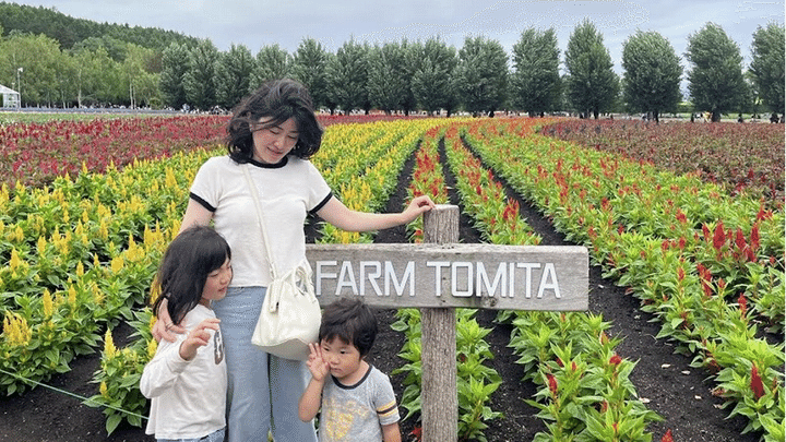 中村真由美さんはこの夏、2歳の次女とともに岐阜から富良野を訪れました。
