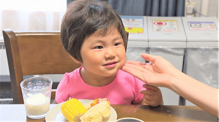 朝ご飯を食べ終え、中村さんが次女を連れて行った保育所は、宿泊施設のすぐ隣、通園時間わずか1分です。