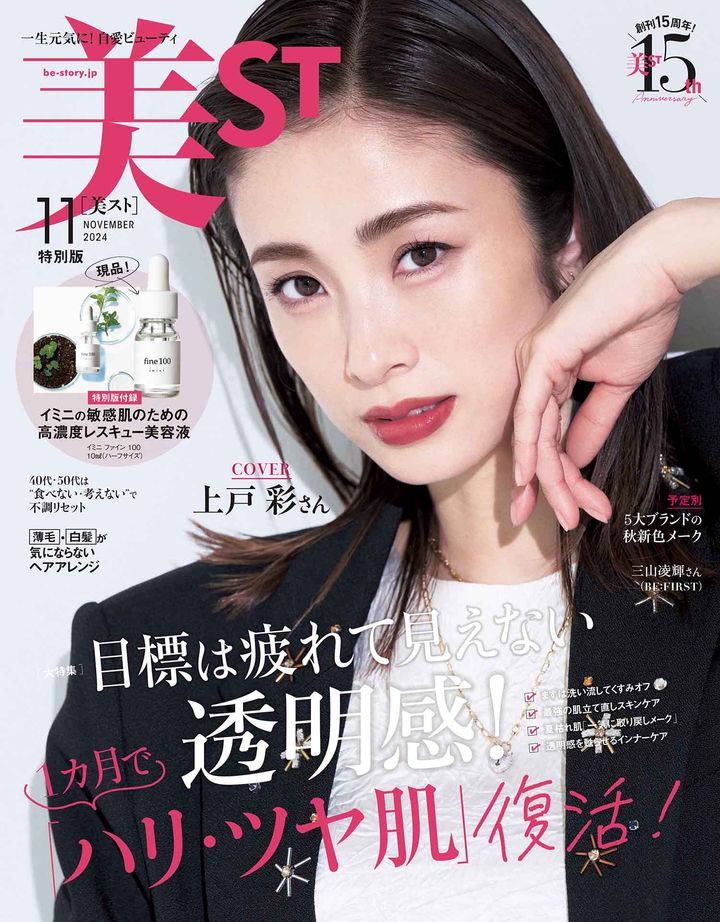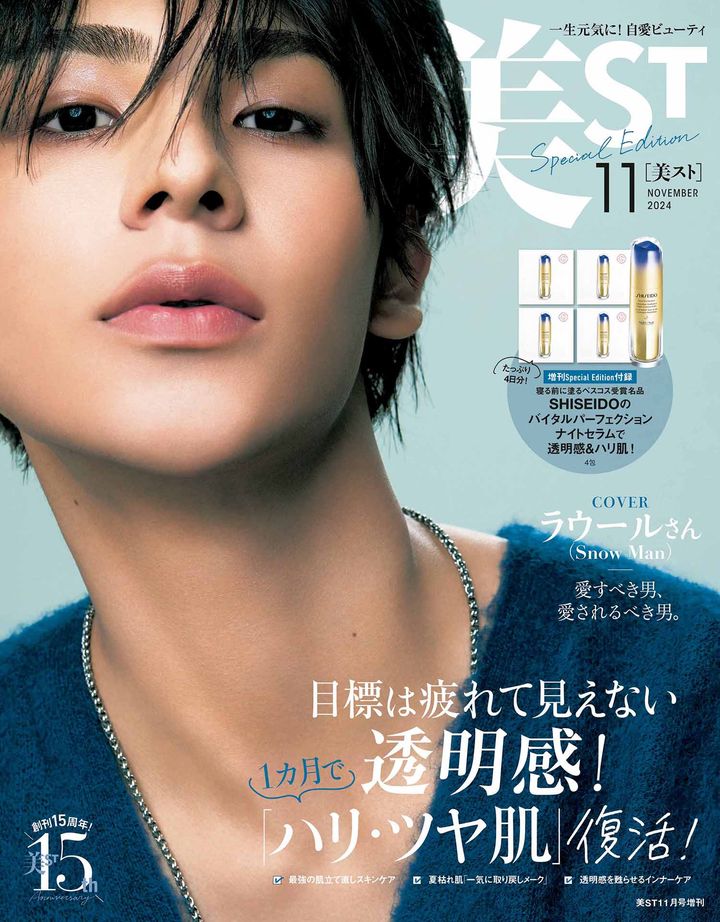 おまたせしました!9月17日(火)発売・美ST11月号の表紙解禁です!本誌・特別版は上戸彩さん、増刊版はラウールさん(Snow Man)が美ST初表紙です!付録は、SHISEIDOのベスコス受賞名品ナイトセラムと美容液、特別版にはイミニのレスキュー美容液の10mlサイズが現品付録に。只今ネット書店にて予約受付中、完売前にぜひお早めのご予約を!