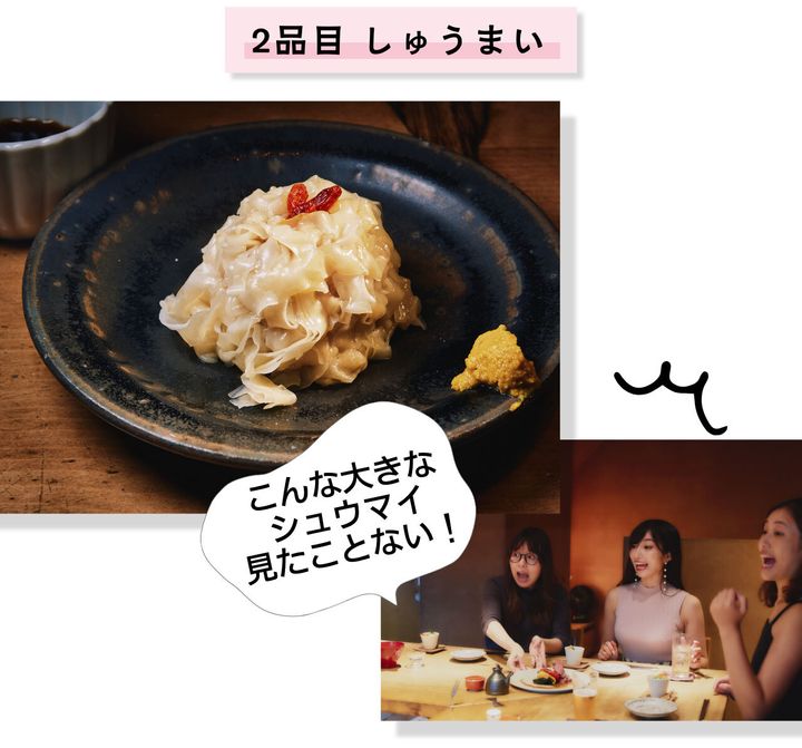 こぶしほどの大きさのしゅうまいは、名物メニュー。鹿児島県産の黒豚を使用しており、コクと旨みがじゅわっと口いっぱいに広がる。