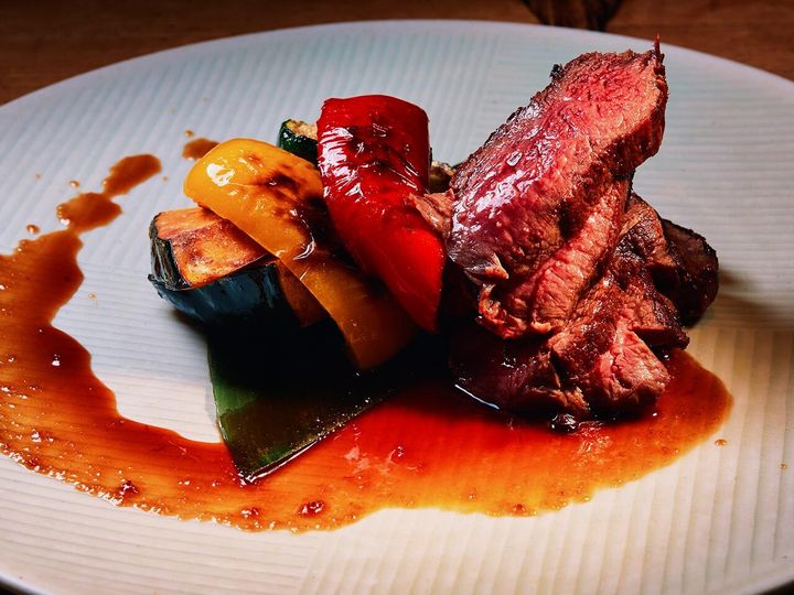 使用するのは、鹿児島県産の黒毛和牛。温暖な鹿児島でストレスなく育つことで、やわからくきめ細やかな肉質に。炭の香りが移り、奥深い味わいが楽しめる。