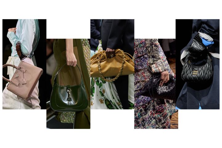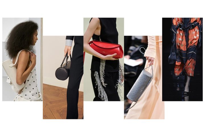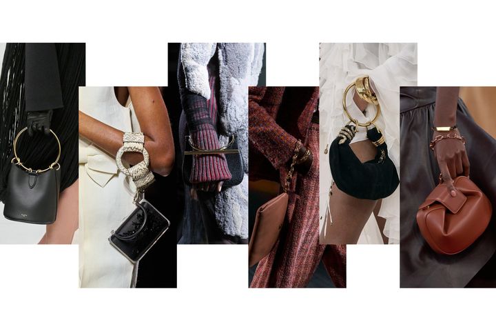ブレスレットバッグやリストバッグの人気は根強い。リングやチェーンなど、装飾的なストラップが付いた小ぶりのバッグはアクセサリー感覚で身につけることができ、特にイブニングルックに最適だ。シェミナ・カマリのクロエでのデビューコレクションに登場したブレスレットバッグや、プラダのクラスプバッグ、シャネルのポーチなどは、スマホに鍵、財布と、必需品がしっかり収まるサイズ感も◎。