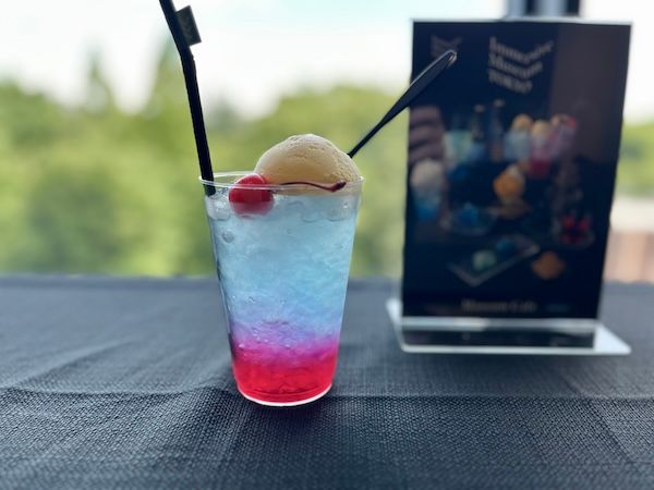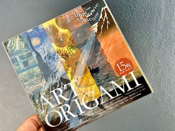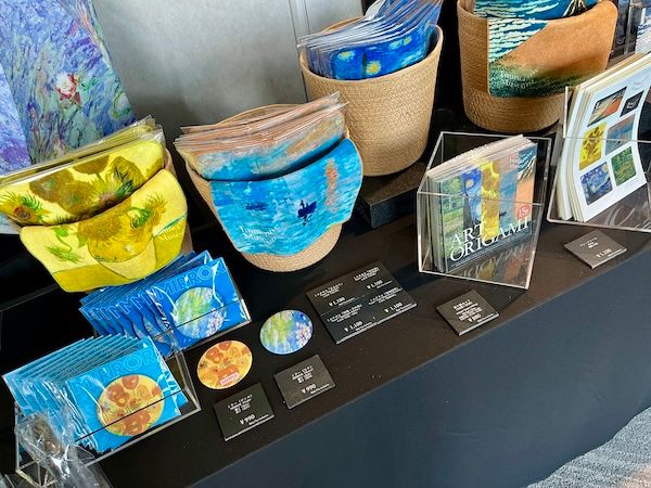 印象的な作品を折り紙一面にデザインし、折り方によって見える部分も違うアート折り紙が、小学生以下のお子様に無料配布。大人も欲しくなる美しいアートオリガミは、ギフトコーナーでも販売(800円)されています。グッズは上質でスタイリッシュなセレクションで、自宅用にもギフトとしても喜ばれそう。同フロアでは、作品にちなんだドリンクなどを楽しむこともできます。
