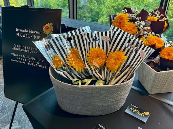特にインパクトの強いゴッホ「ひまわり」など「Immersive Museum」コンテンツとともに撮影を楽しむこともできます。季節に応じた生花も販売されています。中でも平日先着100名様には受付時に生花1輪がプレゼントされるそうです(ひまわりは夏季限定)。