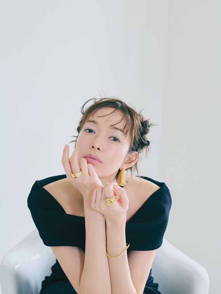 肌面積が多い黒のオフショルドレスは、アクセサリーで遊べる絶好のチャンス! シルバーではなく、キラキラ輝く美しいゴールドをつければ、自然と女っぷりも上がるってもの。トレンドでもある大ぶりなデザインを選べば、周りの視線を独り占めできるはず⁉