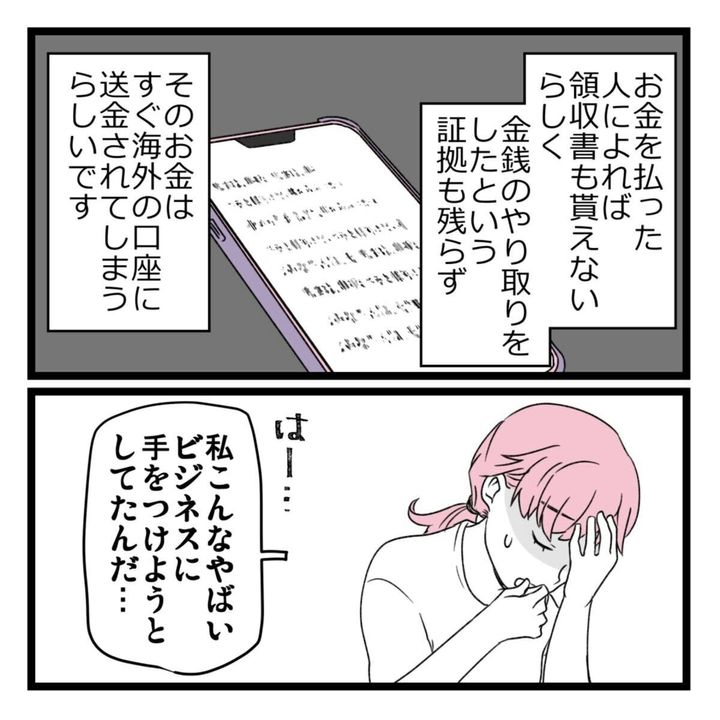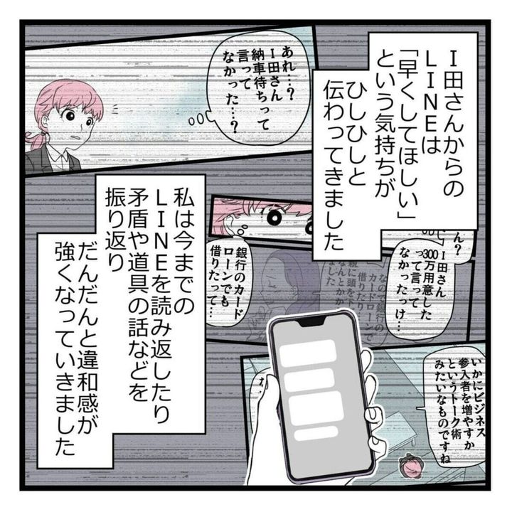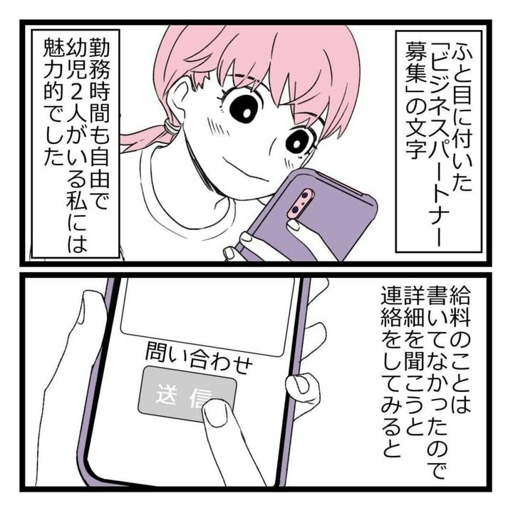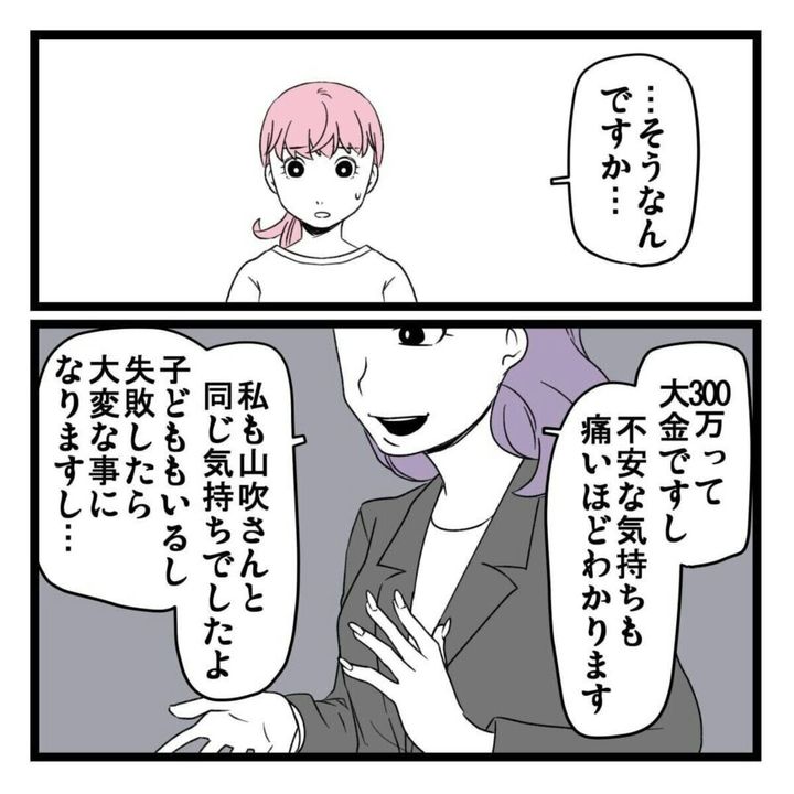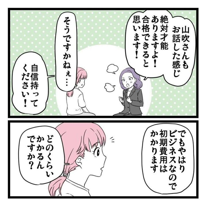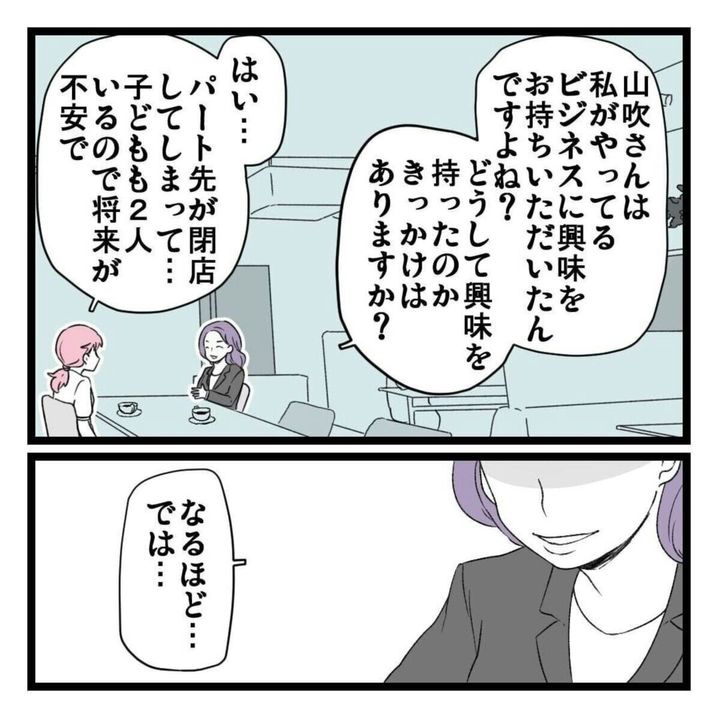 ある日パート先の突然の閉店で、仕事を失ってしまった山吹いろさん。自分の都合の良い時間にできるというビジネスへの求人を見つけ話を聞くと、1回で150万円稼げるけれど初期費用として300万円が必要と言われます。