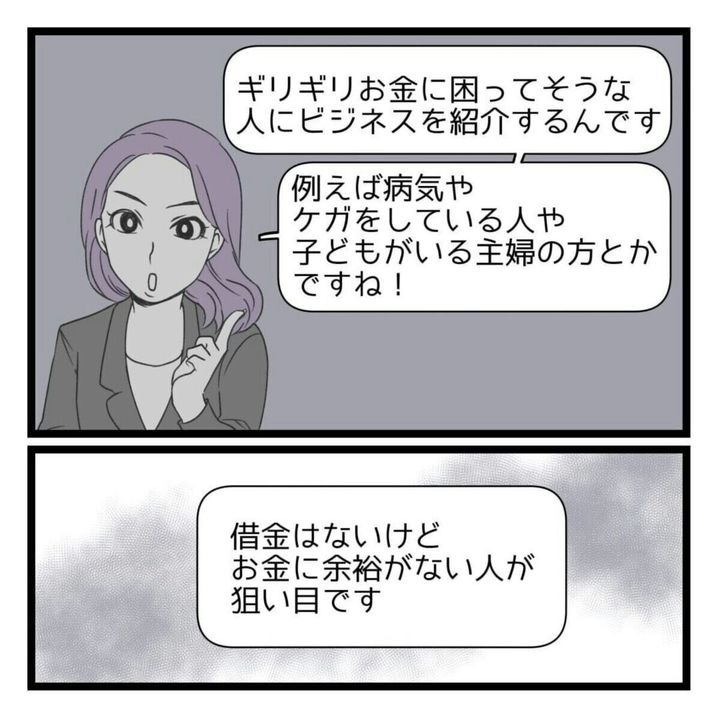 資金の写真を送ればしばらく待てると言われてその通りにしますが、「稼げるか不安」という山吹さんに対して、「ギリギリお金に困っていそうな人が狙い目」「子どもがいる主婦」という女性。