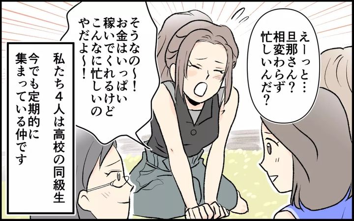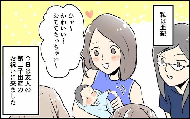 亜紀は、第二子を出産した友人のお祝いに来ていました。高校の同級生4人で集まり、今でも定期的に集まっていて、タイプは違えど今後も付き合っていくと思っていたのでした…。