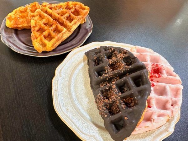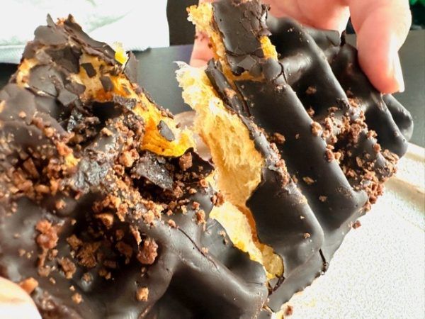 割ってみると、もちもちが伝わる生地の断面!!!チョコだけでなくバターの香りもふわっとします。表面はサクッとしていて、中は厚みがあってもっちり!!!「おいしい~♡今まで食べたワッフルの中で一番好き!!!」とこどもたちも大喜びです。「お母さん、また行くんでしょ?絶対また買ってきてよ!!」と念押しされました。ばれてる・・・(笑)