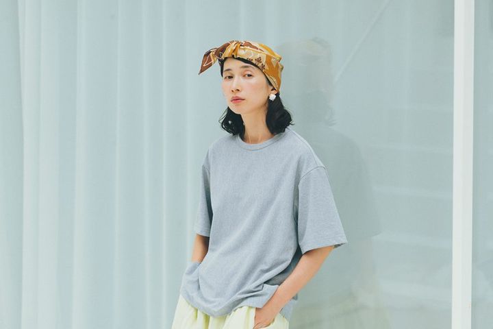 Tシャツ¥13,200/レリル(マイク・グレー)、スカート¥31,900/ネストローブ(ネストローブ 表参道店)、スカーフ¥24,200/ア ピース オブシック(グラストンベリー ショールーム)、ピアス¥19,800/ソムニウム(ソムニウム)