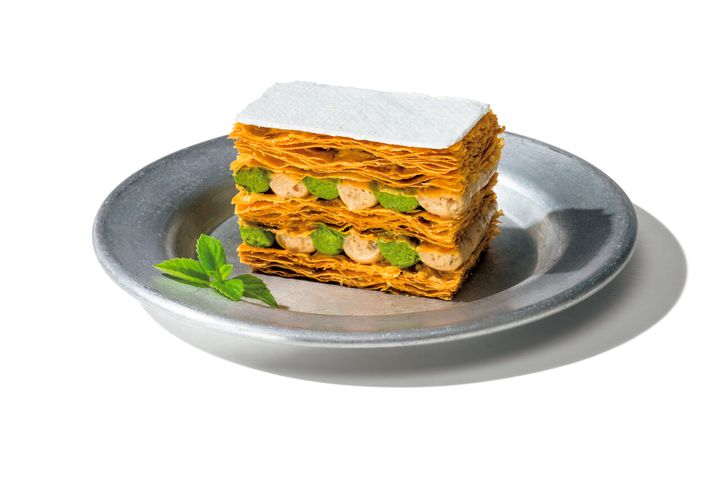 「アジアのベストレストラン50」2024で1位に輝いた「SÉZANNE(セザン)」が展開するカジュアルフレンチ「MAISON MARUNOUCHI」。こちらでは総料理長の代名詞であるミルフィーユがテイクアウトできます(要予約)。9月発売の「栗と抹茶」など、フレーバーは季節で変化。薄氷のようなサクサクのパイ、2種のクリーム、メレンゲの相性が絶妙!