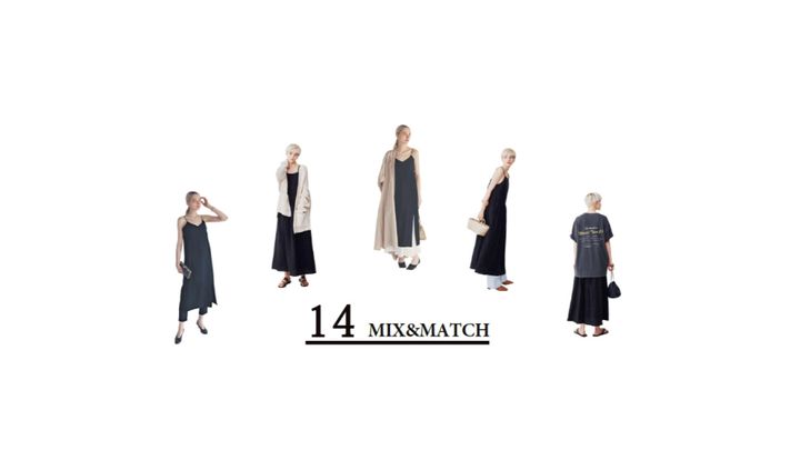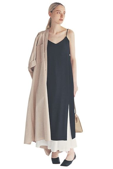 重ねるアレンジも楽しめて、シーンレスな活躍ができる黒のキャミソールワンピース。毎日着ても飽きることなく、むしろ着るたびに新たな可能性を見いだせるあの手この手を研究。