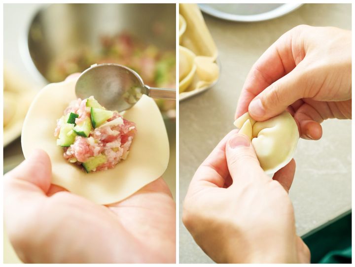 3. つるんと、さっぱり!「きゅうりとセロリの水餃子」の簡単レシピ【香味野菜たっぷり】