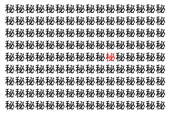 画像の中には、「秘」という漢字が縦に9行、横に16個並んでいます。 全部で144個となりますが・・・、そのうち1つは「異なる漢字」となってますよ!!