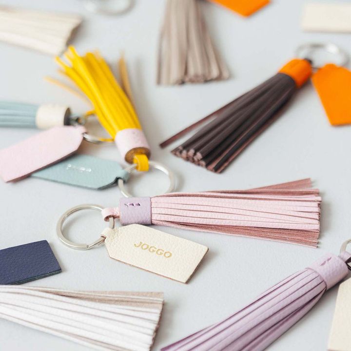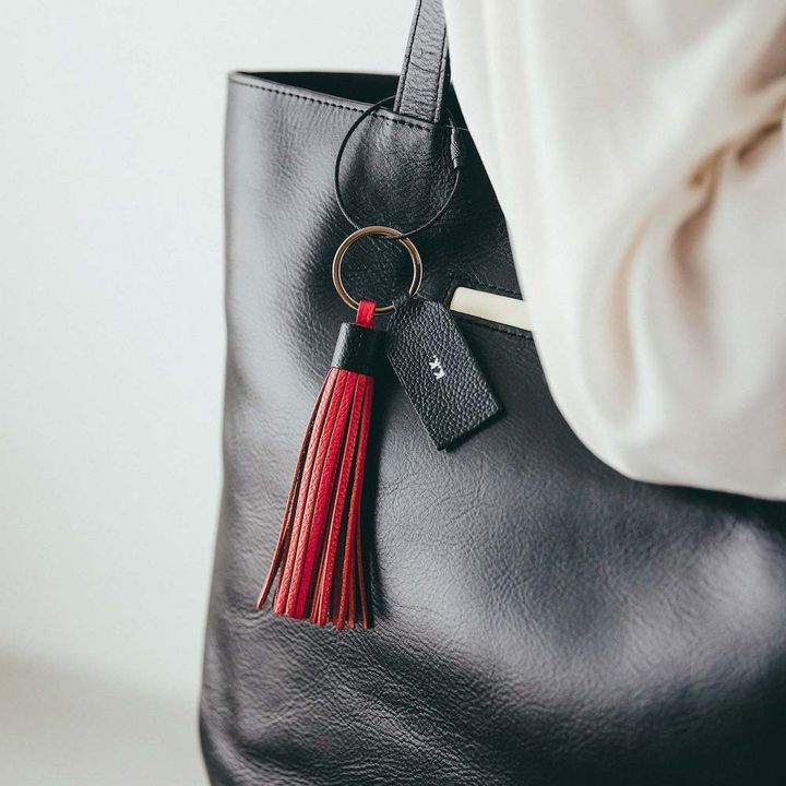 また、タッセルとネームタグがセットになった「レザータッセルチャーム」は、上品さとカジュアルさを兼ね備えたデザインが印象的。シンプルなバッグやポーチなどにつけるだけでステキなアクセントになりますね。