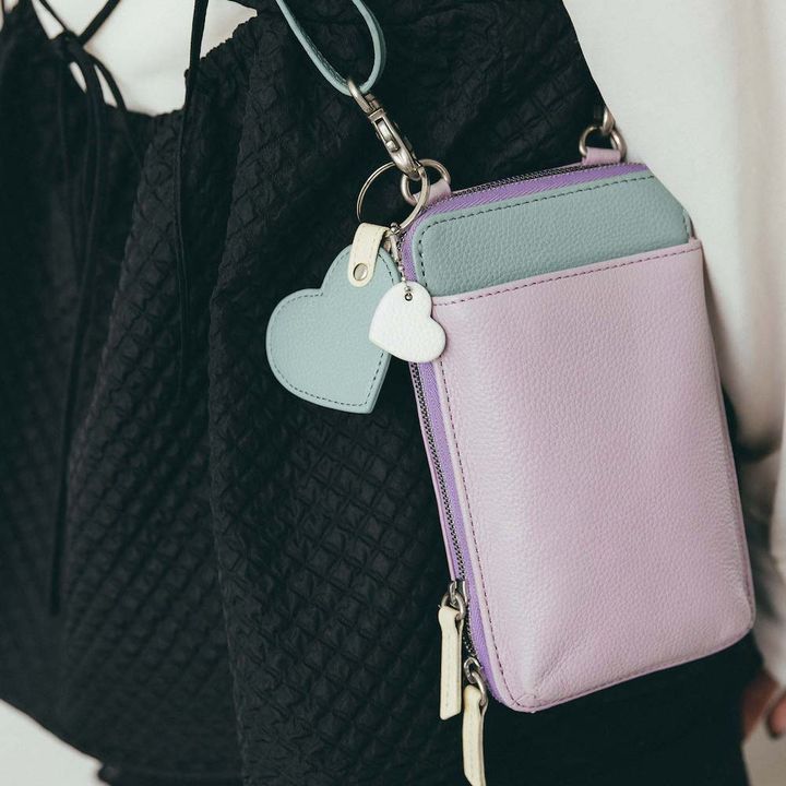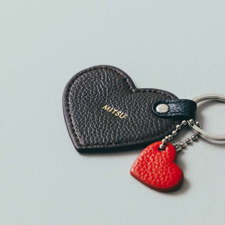 レザーチャームは、ハート型とタッセル型の2種類。サイズ違いの2つのハート型がセットになった愛らしい「コンビハートチャーム」は、バッグや鍵につけるのにちょうどいいサイズ感。大小それぞれのハートの裏表とループの4ヶ所をカラーカスタマイズできます。