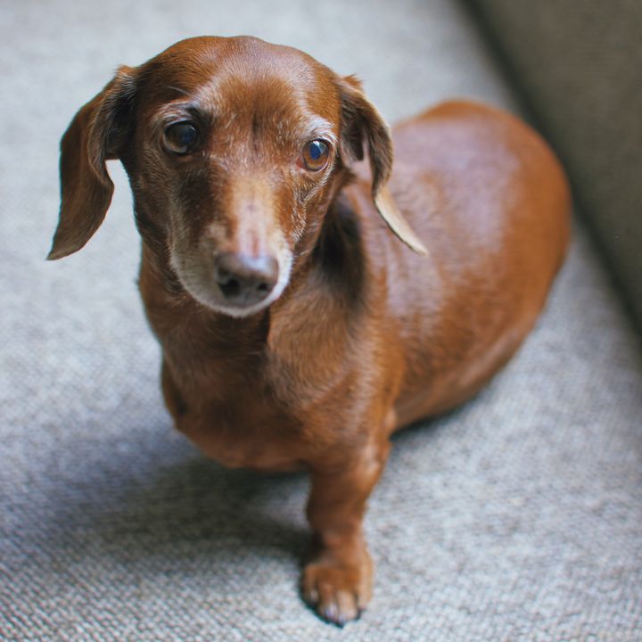 キョロとの出会いは、仲良しのスタイリストさんからのご縁。珍しいチョコレートブラウンで、出会った瞬間に夫婦で一目ぼれ!その愛らしさに迷わず飼うことを決めました。そして、キョロが我が家に来て娘を妊娠。生まれた時から当たり前のように一緒にいたから、姉妹のような同志のような関係で面白いんです。