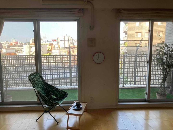 涼しい日の昼間はベランダピクニックも◎。